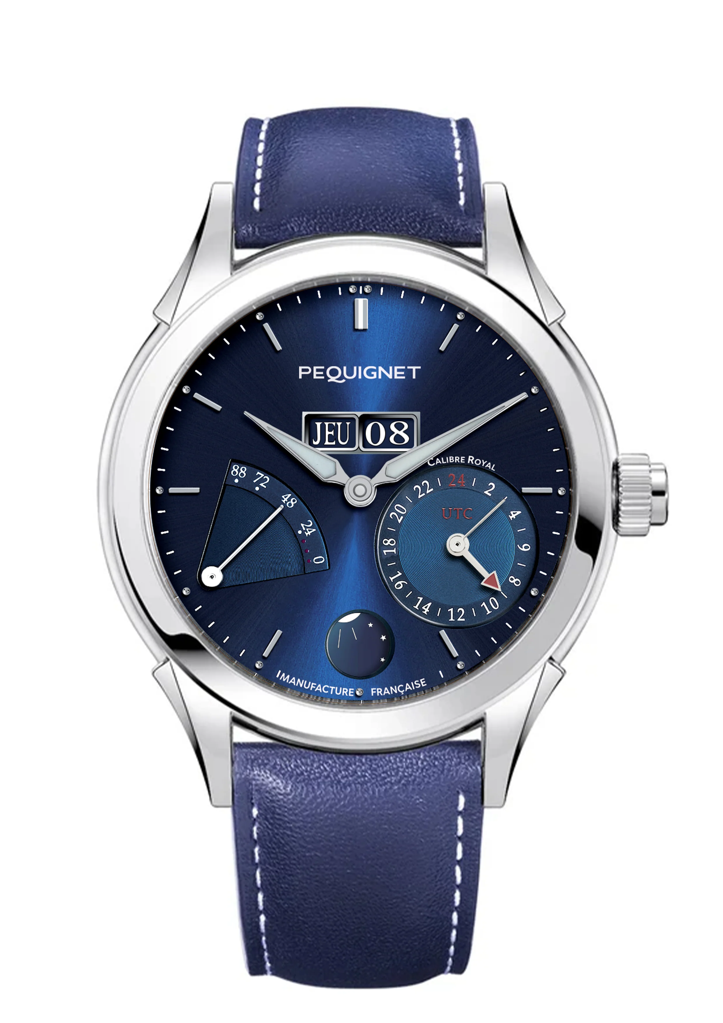 La Royale se dote ici de deux nouvelles complications : le GMT et l’indicateur jour / nuit pour un modèle unique : la Royale GMT est à ce jour la seule pièce au monde avec double fuseau UTC et triple saut instantané de son calendrier complet.